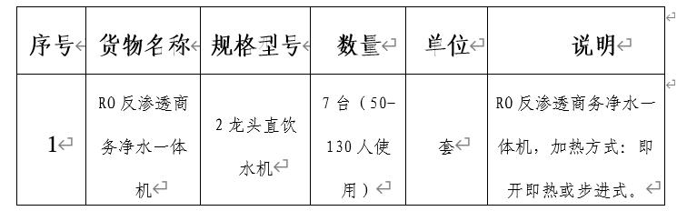 (一)项目内容:采购并安装7台直饮机,确保设备符合国家饮用水安全标准,运行稳定,售后服务完善。